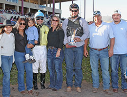 The winning connections of Toastin Heros accept the La Fiesta Derby stakes trophy at Albuquerque Downs Sunday. © Coady Media