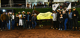 The winning connections of Manny Sr accept the Mexico Breeders’ Futurity Consolation trophy at the Hipodromo de las Americas on Sunday. © Luis Prieto Zamudio Earlier this season, Manny Sr was third in the Mexico Futurity Consolation and also made the finals of the Futurity Garanones. Bred in Mexico by Rancho Santa Rosa Chiapas, he is out of Kabaret by Favorite Cartel. Cesar Garcia Serrano trains son of One Big Bird for Cuadra Mendoza.
