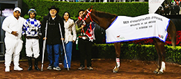 The winning connections of Talk Of The Bar accept the Juvenile Championship trophy at the Hipodromo de las Americas on Sunday. © Luis Prieto Zamudio Trainer Octavio Becerra sent out Talk Of The Bar for Cuadra C R T. He is a Heritage Place Yearling Sale graduate who brought $9,000 last year. Bred by Mary Thompson in Kansas, he is out of Five Bar Toast, by Five Bar Cartel.