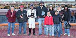 The winning connections of Boot Scoots accept the $80,000 Red or Green Stakes (RG2) trophy at Sunland Park on Saturday. © Coady MediaBoot Scoots wrapped up his 2025 season with a runner-up finish in the New Mexico Classic Derby (RG2). As a juvenile in 2024, he was a finalist in the New Mexico Classic Juvenile, New Mexico State Fair Juvenile, and Zia Juvenile.