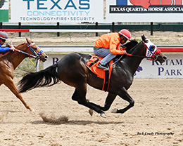 Singles Famous Eagle posted the third-fastest time, winning the ninth race. The filly is owned by Zanne Kiehne and trained by John Stinebaugh. She is a $40,000 Ruidoso Select Yearling Sale graduate and is sired by world champion One Famous Eagle out of the Favorite Cartel mare Singles Cruise, a graded stakes winner. She is a half-sister to stakes winner Miss Fancy Nancy ($105,286).