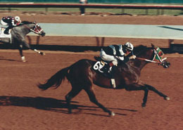 Dash Thru Traffic, under jockey Jacky Martin, wins the 1992 $1.89 million All American Futurity at Ruidoso