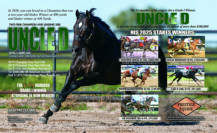 LOS ALAMITOS, CA–JANUARY 22, 2026–Thirty-two sophomores have been divided into four trials at 400 yards to the Grade 1, $201,000 Los Alamitos Winter Derby on Saturday night at Los Alamitos. The trials will make up an all-Quarter Horse Late Pick Four and the quality of these standouts comes through as 20 of th .. Read More